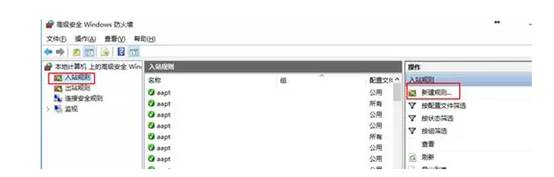 4、点击入站规则,新建规则
