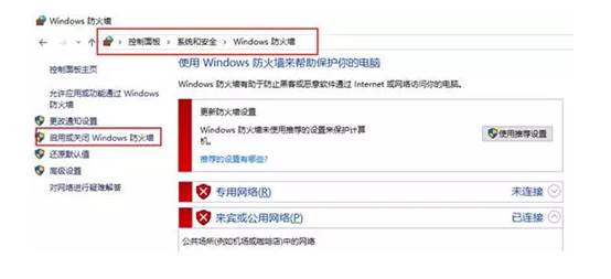 1、打开控制面板-系统与安全-Windows防火墙,点击左侧启动或关闭Windows防火墙