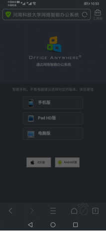 2.移动端情况说明:使用方法基本和以前一致,但目前仅基本功能(电子邮件、工作流、个人文件柜等)可使用,其他功能还在调试。