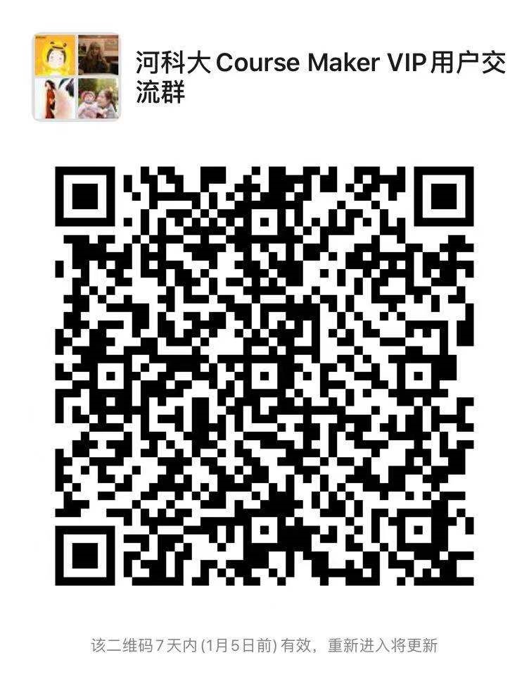 为了方便大家使用交流,请扫描以下二维码加入微信群“河科大Course Maker VIP用户交流群”。