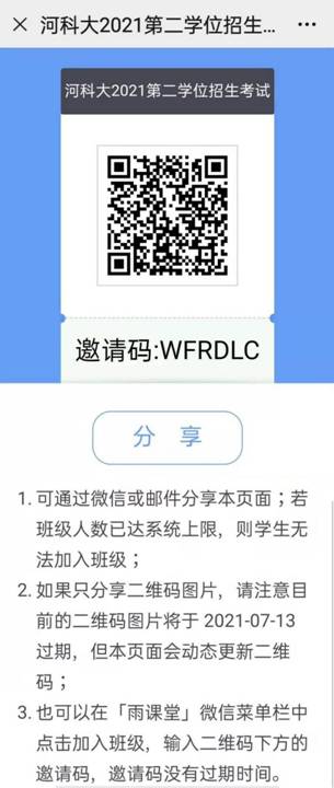 2.通过招办资格审核的考生必须于6月18日前加入雨课堂班级(进班方式查看附件),考生必须实名认证,注明姓名、院校、学号。
