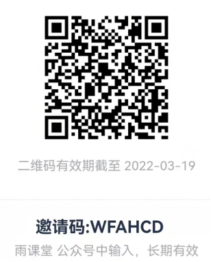 培训形式:雨课堂在线直播。请老师用微信扫码听课,或在“雨课堂”微信公众号中点击加入班级,输入邀请码听课。