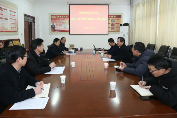 校新闻中心讯 2021年12月至2022年1月,校领导王洪彬、孔留安、李漪、李友军、李全安、朱春阳、孟伟、魏世忠、李会宗、张小安、杨霞分别带队深入基层,开展“能力作风建设年”“调查研究、征求意见、查摆问题”专项工作。
