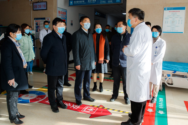 1月31日,王洪彬一行先后来到一附院内科诊室、影像中心、急诊科、住院部,以及学校北大门等地,向值班医护人员和保卫人员拜年问候,详细了解节日值班、病人住院就医、疫情防控工作等情况,对坚守在一线的工作人员舍小家、顾大家,无私奉献、坚守岗位的精神表达了崇高的敬意。在一附院,王洪彬亲切地说,“大家在节假日坚守在工作岗位上,放弃了和家人团聚的时间,守护着患者的生命与健康,体现了医务工作者的责任和担当,希望大家注意身体,给大家拜年了,祝大家过年好!”在学校北大门,王洪彬对值班门卫说,“自新冠肺炎疫情以来,门卫就一直坚守在疫情防控一线,认真负责,把好了学校‘第一道防线’,守护着师生的健康安全,春节期间大家坚守岗位,有效地保障了校园安全,感谢你们!”