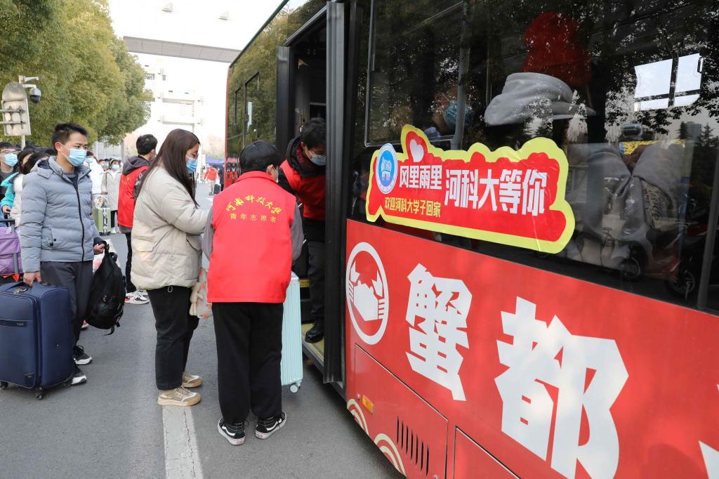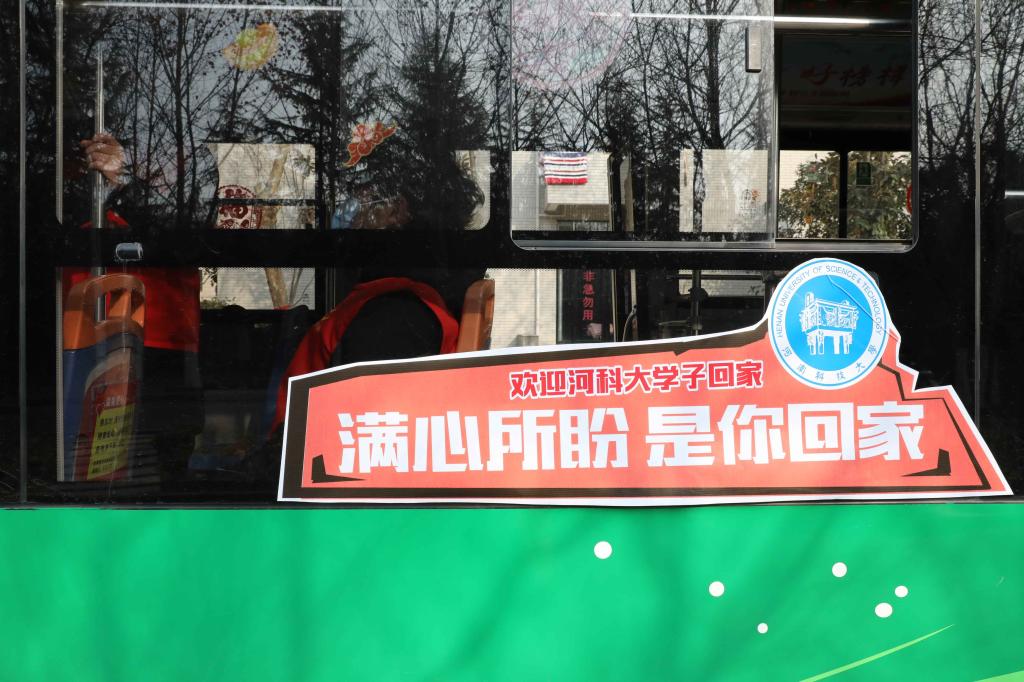 校新闻中心讯 “满心所盼,是你回家”“你们回来就是最美的风景”“风里雨里,河科大等你”,2月19日至20日,是学校第一批学生返校报到的日子。为方便学生,一辆辆贴有暖心标语的校园摆渡车穿梭于校园,将返校学生送至宿舍。