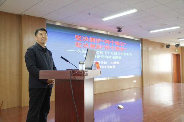 王洪彬以《坚决拥护“两个确立”,坚决做到“两个维护”——从百年党史中感悟党的政治建设》为题,围绕“百年党史与‘四个自信’”、“百年党史与‘四个意识’”、“百年党史与‘两个确立’”、“百年党史与‘两个维护’”、“正确认识做到‘两个维护’”、“如何坚决做到‘两个维护’”六个方面,分享了他从百年党史中感悟的加强党的政治建设经验。王洪彬系统阐释了百年党史与“四个自信”、“四个意识”、“两个确立”、“两个维护”的关系,分析了如何正确认识做到“两个维护”和如何坚决做到“两个维护”。王洪彬强调,坚决做到“两个维护”,是历史和人民的共同选择、郑重选择、必然选择,是新时代加强党的政治建设的首要任务和首要政治纪律。
