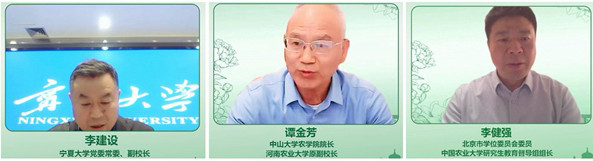 中国工程院院士、中国农业大学教授张福锁,中国工程院院士、湖南省农业科学院党委书记柏连阳,河南省教育厅副厅长、一级巡视员刁玉华,河南省教育厅学位管理与研究生教育处处长曹克舜,十大网投正规信誉官网校长孔留安、副校长李友军,宁夏大学副校长李建设,全国农业专业学位研究生教育指导委员会秘书长、中国学位与研究生教育学会农林学科工作委员会主任委员、中国农业大学研究生院常务副院长郭鑫,清华大学研究生教育研究中心主任、中国学位与研究生教育学会研究生教育学专业委员会主任刘惠琴,北京市学位委员会委员、中国学位与研究生教育学会农林学科工作委员会名誉主任委员兼学术咨询组组长、中国农业⼤学研究⽣教育督导组组长李健强等出席开幕式。开幕式由中山大学农学院院长、河南农业大学原副校长、中国学位与研究生教育学会农林学科工作委员会学术咨询组副组长谭金芳教授主持。
