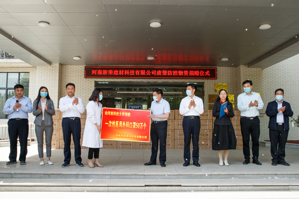 陈万松表示,当前全国疫情多点散发,形势严峻复杂,河南浙荣建材科技有限公司心系高校师生,希望通过发挥企业优势为学校疫情防控工作助力,为师生健康安全增添一份保障。同时将进一步加强与学校的交流,深化产学研合作,发挥校企双方优势,共谋高质量发展。