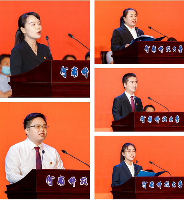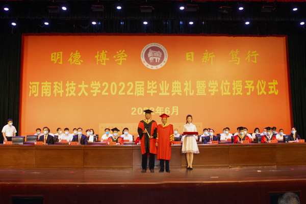 本科毕业生代表、机电工程学院刘铎发言回顾了在河科大求学的四载时光,分享自我成长的蜕变、思考和收获,并号召毕业生们以时不我待、只争朝夕的紧迫感在青春的赛道上跑出当代青年的最好成绩。