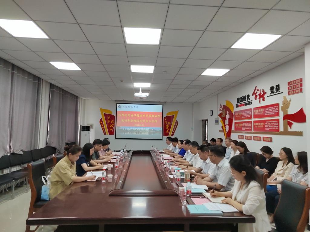学校在医科1号楼302会议室举行汇报会。省卫健委专家组成员、洛阳市疾控中心主任李安民,副校长李友军、张小安,医学部党委书记兼主任雷方出席会议。教务处、基础医学院相关领导及部分教师代表参加会议。会议由张小安主持。