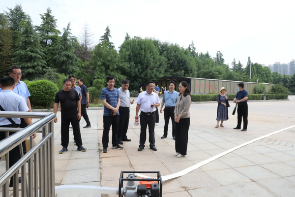 演练以洛阳连日因持续强降雨造成校园低洼地段积水严重为背景。上午10时,巡视值班人员发现图书馆负一楼、地下车库及会议中心下沉广场,遭受洪水威胁,积水严重,立即向十大网投正规信誉官网防汛指挥部报告,防汛领导小组启动防汛应急预案,进入防汛应急程序。应急抢险队抢险队员紧急集结,迅速进行抢险救援物资分发、紧急排水、排查电力、地下车库防汛抢险堆放沙袋等,师生疏散组第一时间疏散师生、应急救援队紧急救援被困人员……演练现场,工作人员有条不紊,严格按照演练方案进行疏散、抢险,演练历时50分钟圆满结束。