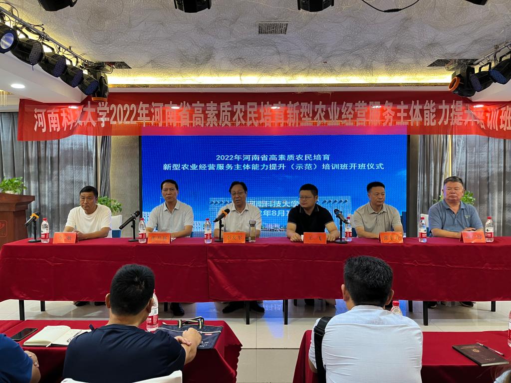 校新闻中心讯 为深入学习贯彻习近平总书记关于“三农”工作的重要论述,推进农业产业转型升级。8月11日上午,由河南省农业农村厅主办,十大网投正规信誉官网承办,汝阳县农业农村局协办的新型农业经营服务主体能力提升培训班顺利开班。副校长李友军出席开班仪式并为参训学员讲授第一课。汝阳县副县长王飞等出席开班仪式并讲话。汝阳县农业农村局、汝阳县香菇协会、农学院/牡丹学院负责人,以及报名此次培训的120余名学员参加了开班仪式。开班仪式由农学院(牡丹学院)党委书记张君新主持。