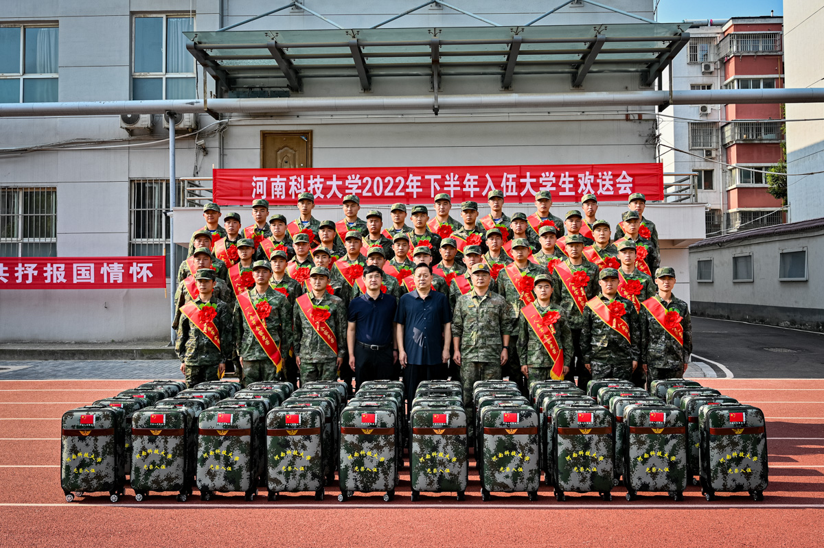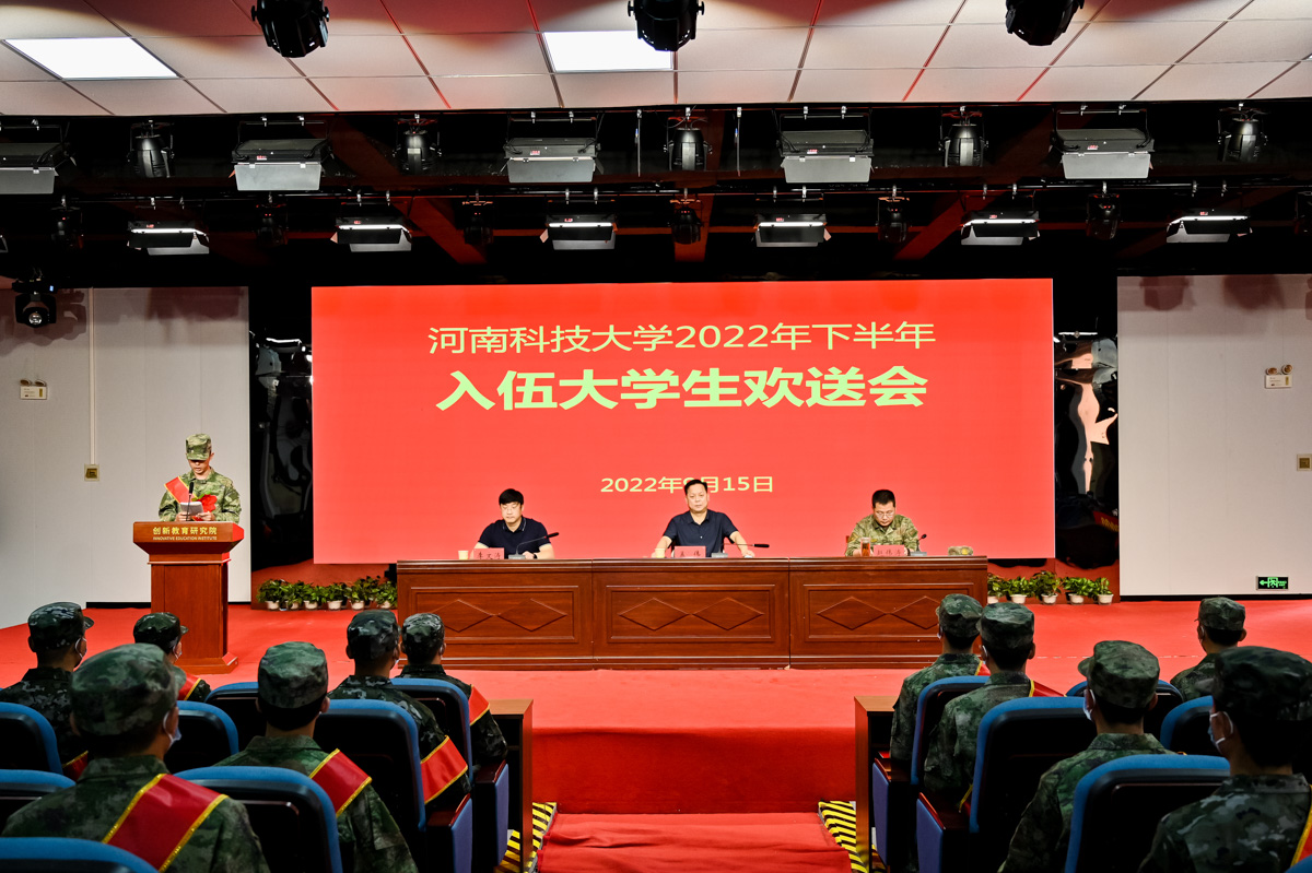 校新闻中心讯 9月15日上午,网投官网2022年下半年大学生入伍欢送会在洛阳市涧西区民兵训练基地举行。校党委副书记孟伟,涧西区区委常委、武装部部长赵伟涛,网投官网党委武装部负责人,全体应征入伍大学生和退役大学生代表等参加会议。会议由武装部部长李文涛主持。