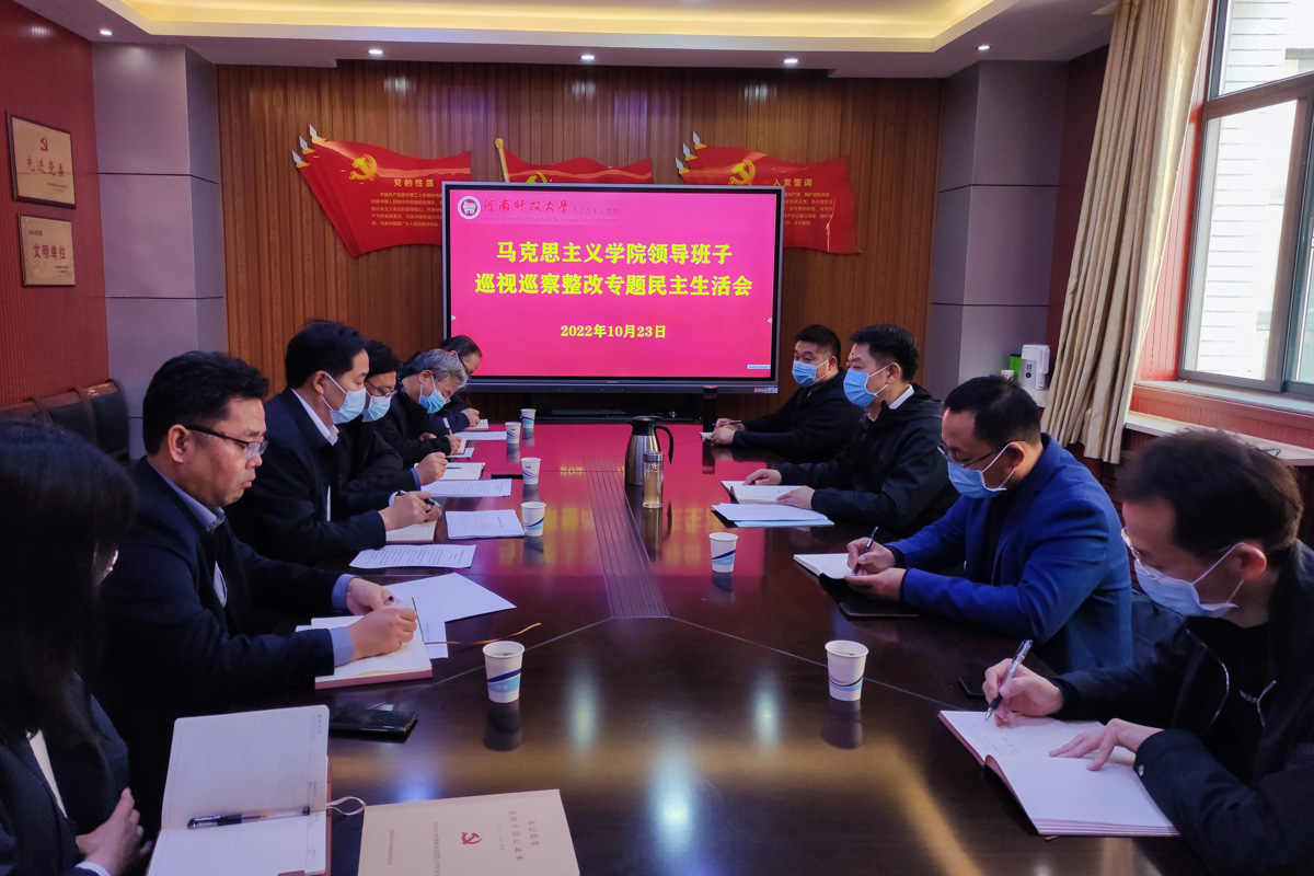 王洪彬强调,学院党委要认真学习贯彻党的二十大精神,做好二十大精神进教材、进课堂、进头脑工作,做好二十大精神的理论宣讲和理论阐释工作。要不折不扣落实全面从严治党和党风廉政建设主体责任,对照主体责任清单、巡视巡察问题清单,扎扎实实完成“规定动作”,营造风清气正良好政治生态。学院班子成员要知责于心、履责于行,自我加压、形成合力,以“时时放心不下”的责任感,高质量落实学校相关工作部署。学院领导班子要在关心青年教师上下功夫,在引才、育才、用才方面做文章,配齐建强思政课教师队伍,充分激发广大教职工的创造活力。要规范思政课教学管理,深化思政课教学研究与理论创新,抓好马克思主义理论学科建设,力争在博士点申报中取得好成绩,努力把学院建设成为马克思主义理论教学、研究、宣传和人才培养的坚强阵地。