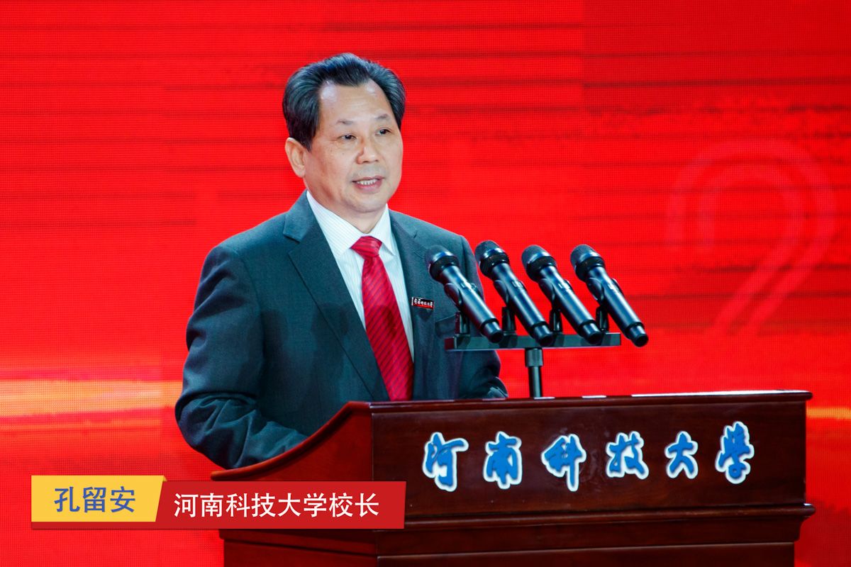 校长孔留安作《日新笃行七十载 踔厉奋发创一流》的报告。他回顾了70年来十大网投正规信誉官网建设发展的峥嵘岁月,学校因国家工业发展的需要而建,为国家“一五”计划的需要而迁,随国家和地方改革开放的深入而兴,也必将伴随着中华民族伟大复兴而进一步发展和壮大。一代又一代河科大人用忠诚和智慧、勤劳与汗水共同书写了自强不息、科技报国、爱国荣校的辉煌篇章。庆祝建校70周年暨“双一流”大学创建推进大会的隆重召开,必将成为河科大高水平大学建设的新起点和“加油站”,学校将全面贯彻党的教育方针,落实立德树人根本任务,努力践行为党育人、为国育才的初心使命,锚定“双一流”创建目标,团结协作、共谋发展、改革创新、真抓实干、埋头苦干,取得更大成就,展现更大作为,在“奋勇争先、更加出彩”中书写河科大绚丽篇章。