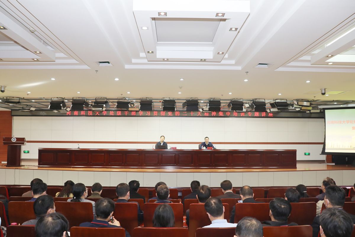 校新闻中心讯 为深入学习贯彻党的二十大精神,把全校师生的思想统一到党的二十大精神上来,把力量凝聚到党的二十大确定的各项任务上来,3月9日上午,学习贯彻党的二十大精神处级干部培训班举行第三讲,马克思主义学院院长刘振江教授作题为“全面建设社会主义现代化国家的政治宣言和行动纲领”的专题讲座。全校中层干部聆听了专题讲座。讲座由党委宣传部长赵祥禄主持。