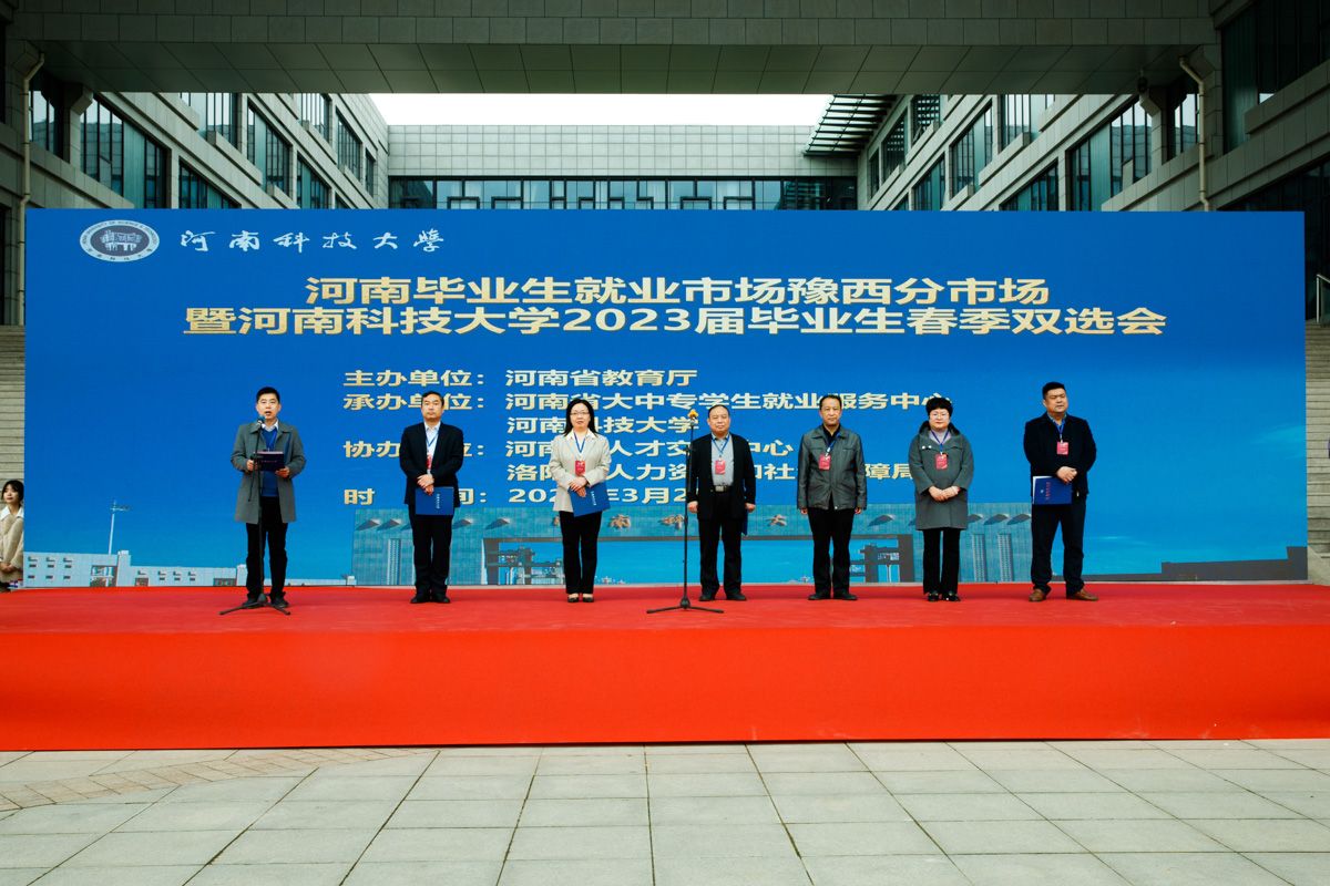 校新闻中心讯 3月25日,由河南省教育厅主办,河南省大中专学生就业服务中心、十大网投正规信誉官网承办,河南省人才交流中心、洛阳市人力资源和社会保障局协办的“河南毕业生就业市场豫西分市场暨十大网投正规信誉官网2023届毕业生春季双选会”在开元校区图书馆外广场举行。河南省大中专学生就业服务中心常务副主任凡富堂,十大网投正规信誉官网副校长侯小改,洛阳市人力资源和社会保障局党组书记、局长白剑,洛阳市人力资源和社会保障局党组成员、洛阳市人力资源和公共就业服务中心党委书记、主任张育红等出席开幕式并现场指导工作。豫西地区9所高校就业工作部门负责人及毕业生参会。