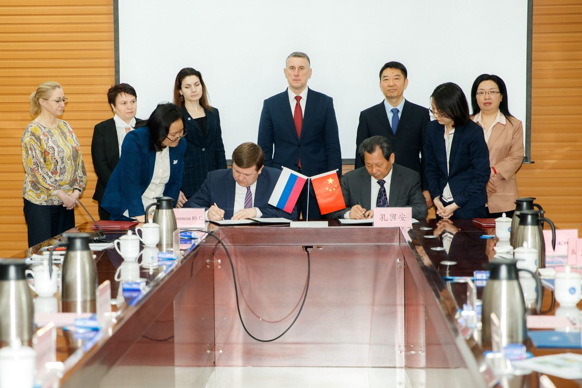 孔留安讲话。他从历史沿革、学科特色、人才培养等方面介绍了学校建设发展情况,重点介绍了学校与俄罗斯高校开展交流合作情况。他指出,希望两校加强交流,深化友谊,努力实现在更多领域、更大范围、更深层次的合作交流。