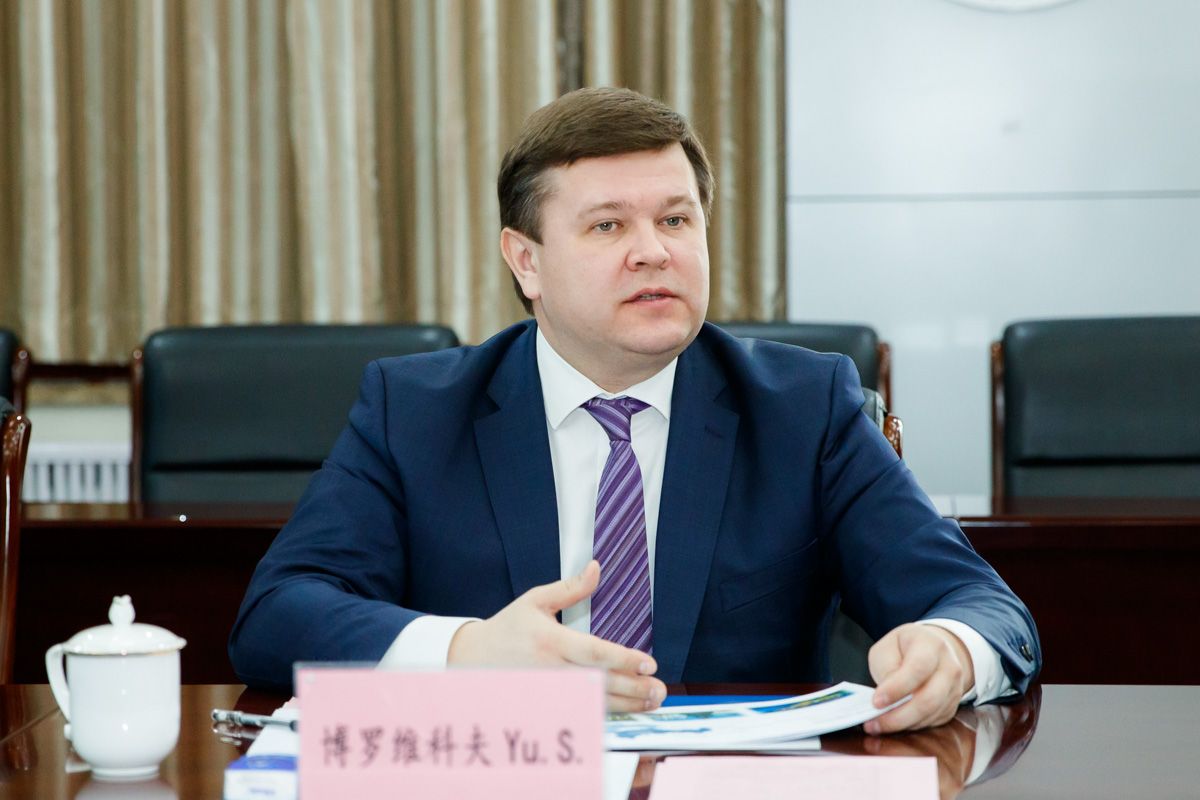 博罗维科夫·尤里·谢尔盖耶维奇讲话。他详细介绍了诺夫哥罗德国立大学的基本情况,并希望双方可以在多个学科多个领域开展深度合作。