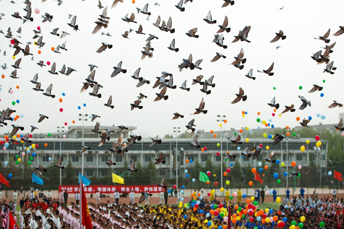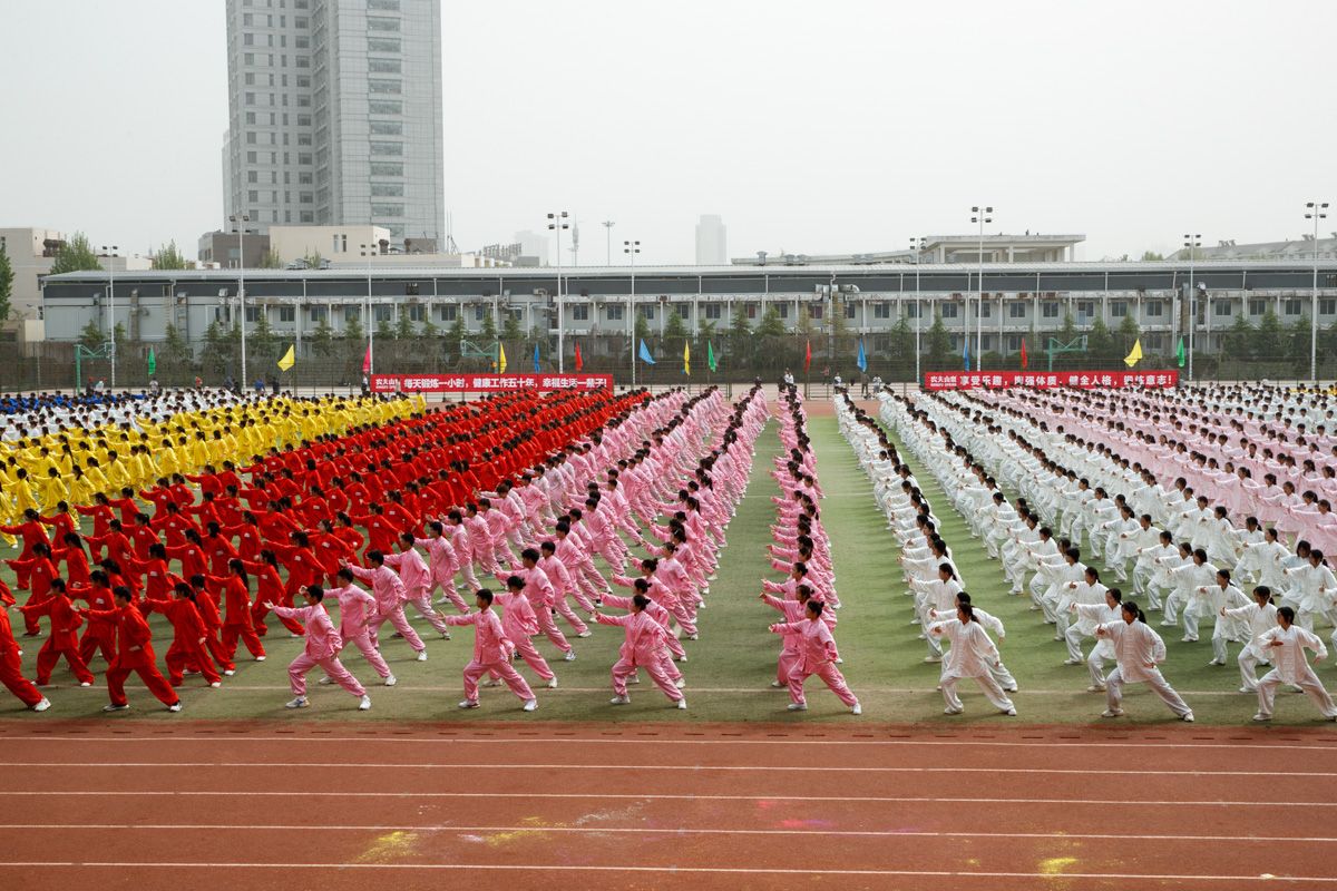 气势磅礴的太极拳表演,刚劲有力的武术表演,活力四射的健美操表演震撼了现场观众的心,将运动会开幕式推向高潮。展翅高飞的和平鸽、腾空而起的彩色气球成为开幕式上一道亮丽的风景。