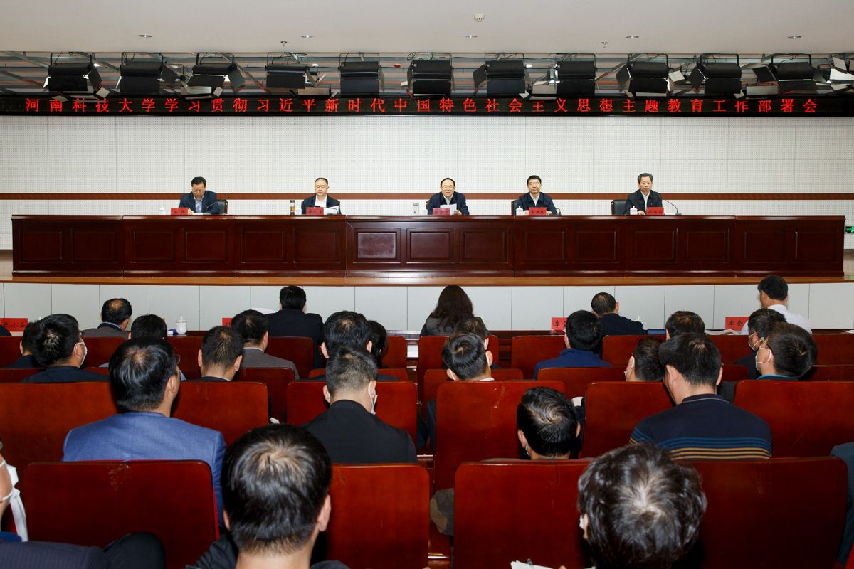 校新闻中心讯 4月13日上午,学校召开学习贯彻习近平新时代中国特色社会主义思想主题教育工作部署会。省委第二十五巡回指导组组长、濮阳市政协主席徐慧前出席会议并作指导讲话,指导组副组长、平顶山市人大常委会副主任董汉生,成员王淼、孙胜久出席会议。校党委书记王洪彬作工作部署讲话,在校校领导,全体中层干部,省级及以上党代表、人大代表、政协委员,学校相关部门全体同志参加会议。会议由校长孔留安主持。