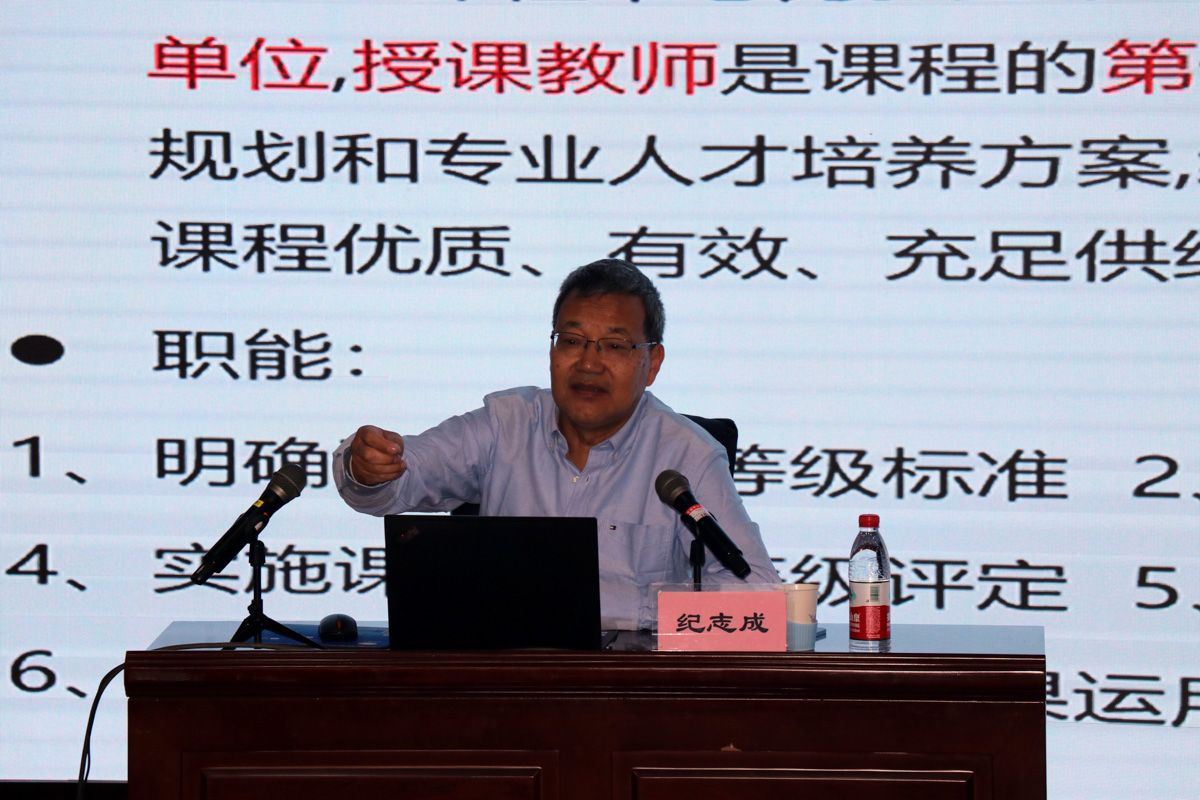 纪志成以课程是学校的产品、专业是学校的品牌、高校数字化的规范及数字化教育的转型为视角,围绕“新时代一流本科教育如何长期有效的进行改革与实践”进行讲解。他通过解读教育部等五部门关于印发《普通高等教育学科专业设置调整优化改革方案》、河南省人民政府办公厅《关于加快一流专业建设提高人才培养质量的指导意见》及河南省教育厅办公室《关于加快 2023 年本科教育创新发展提升高水平本科人才自主培养能力的通知》等文件,指出课程中心的职责与功能、课程建设的五要素、专业建设的目标及原则。最后根据党的二十大报告中“推进教育数字化”的要求,以浙江大学为例分析了高等教育如何实现数字化转型,高校如何符合数字化的规范。