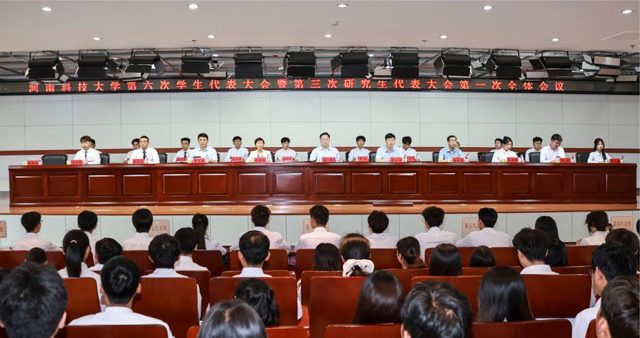 校团委书记曹高洋向第六次学生代表大会暨第三次研究生代表大会致贺词。学生会执行主席刘棠凯、研究生会执行主席邱应龙分别代表学生会、研究生会作题为《凝心聚力担使命,踔厉奋发新征程,团结带领全校同学助力学校“双一流”创建,在挺膺担当中谱写新时代青春华章》《不忘初心敢担当,牢记使命有作为,团结带领全校研究生为加快“双一流”创建、建设具有自身特色的高水平综合性大学汇聚合力、增添活力、激发动力》的工作报告。