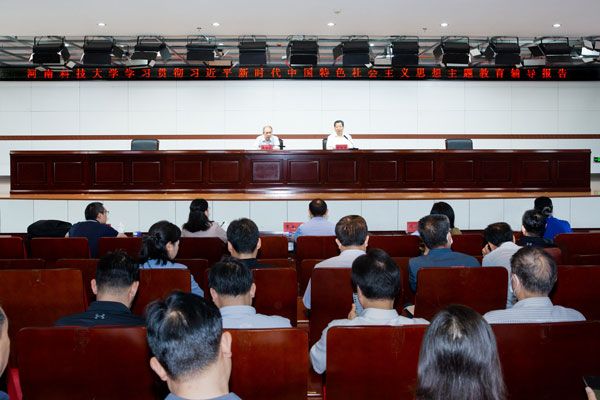 校新闻中心讯 为深入开展学习贯彻习近平新时代中国特色社会主义思想主题教育,坚持立德树人根本任务,着力推进思政课教师队伍、辅导员队伍建设工作,6月13日,学校举办学习贯彻习近平新时代中国特色社会主义思想主题教育辅导报告会。校领导王洪彬、孔留安、李全安、杨霞、侯小改、庞新厂、雷方出席报告会,全体中层干部、全体辅导员、思政课教师代表参加报告会。校长孔留安主持报告会。