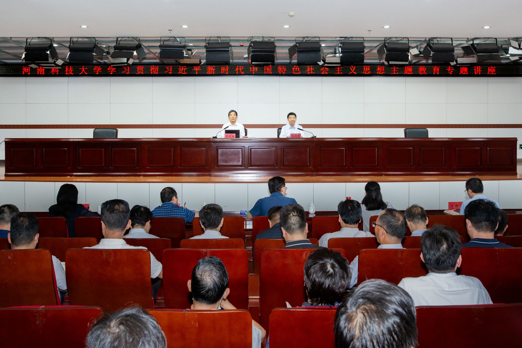 校新闻中心讯 为进一步深入学习贯彻习近平总书记的重要讲话精神,不断推动全校教职工深刻理解“第二个结合”的丰富内涵,更好担负起新的文化使命,6月15日,学校邀请原中共中央党史研究室宣传教育局副局长薛庆超作主题教育专题讲座。校领导王洪彬、孟伟、李全安、杨霞、侯小改、庞新厂,中共洛阳市委宣传部副部长李国强出席会议,全体中层干部、思政课教师代表参加会议。讲座由校党委书记王洪彬主持。