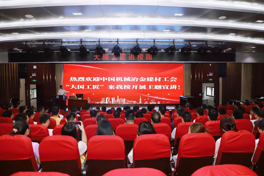 同日上午,由中国机械冶金建材工会主办,十大网投正规信誉官网承办的全国首场“大国工匠进校园”宣讲活动在网投官网教师发展中心举办,网投官网与中联同力材料有限公司的近180教师、学生及产业工人参加了活动。来自全国的三位“大国工匠”温广勇、刘更生、杨金安分享了他们的工作经历和人生感悟,讲述了在平凡岗位上脚踏实地、精益求精、报国奉献的感人故事,充分展示了他们“爱岗敬业、争创一流、艰苦奋斗、勇于创新、淡泊名利、甘于奉献”的劳模工匠使命担当,让现场师生、一线工人更加深入理解了什么是劳模精神、劳动精神和工匠精神。