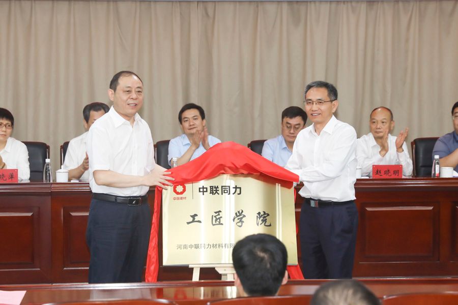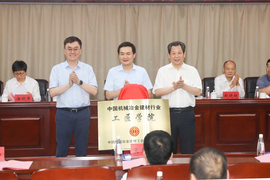 张杰、孔留安、刘宗虎共同为中国机械冶金建材行业工匠学院揭牌。赵晓明、杨霞、潘晓萍共同为河南省机械冶金建材行业工匠学院揭牌。李全安、任玉华共同为中联同力工匠学院揭牌。