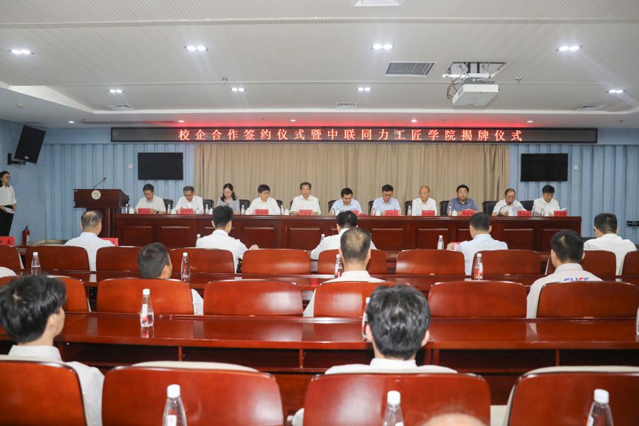 校新闻中心讯 7月19日上午,中国机械冶金建材行业工匠学院、河南省机械冶金建材行业工匠学院、中联同力工匠学院在网投官网揭牌。中国机械冶金建材工会副主席、分党组成员张杰,中国机械冶金建材工会建材部部长解绍伟,河南省机械冶金建材工会主席赵晓明,新天山水泥工会主席潘晓萍,河南中联同力材料有限公司董事长刘宗虎、副书记任玉华、副总经理才世杰,十大网投正规信誉官网校长孔留安,党委副书记、工会主席杨霞,副校长李全安、张小安等出席会议。签约揭牌仪式由李全安主持。