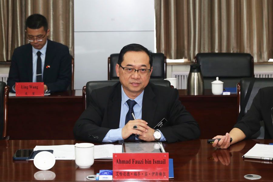 王洪彬致欢迎辞。他代表学校对艾哈迈德•福齐•宾•伊斯梅尔一行来访交流表示热烈欢迎,简要介绍了洛阳深厚的文化底蕴,并从历史沿革、学科优势、办学特色、国际化办学等方面介绍了学校建设发展情况。他指出,学校高度重视对外交流与合作,前期通过两校人员的交流,双方在人才培养、科学研究、文化交流等方面达成了合作意向。希望以此次访问为契机,进一步加深了解,增进友谊,加快将合作项目落地落实,努力将两校合作打造成为推进共建“一带一路”教育行动的成功典范。