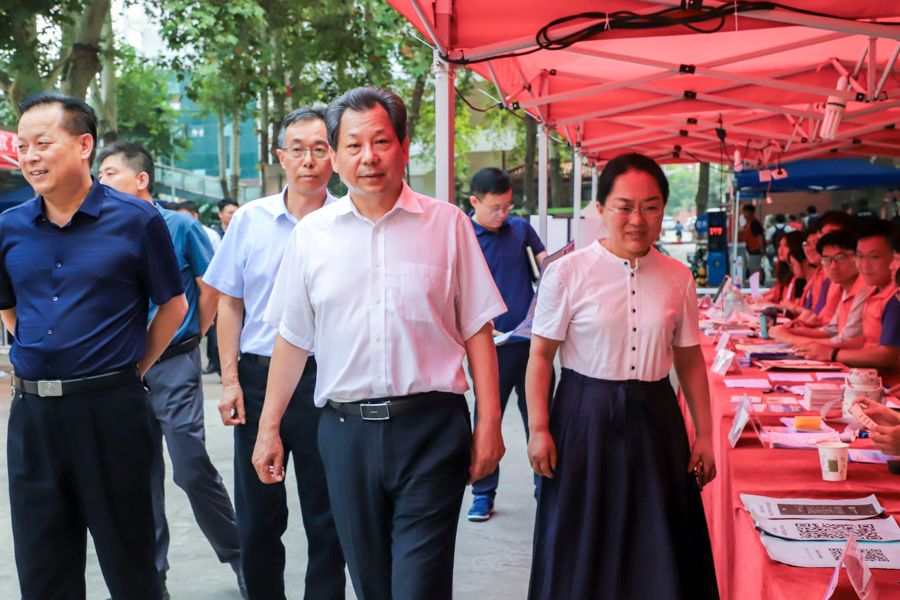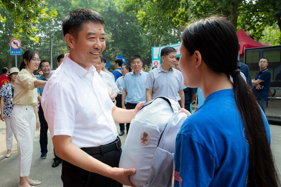 校党委书记王洪彬、校长孔留安等校领导及相关单位负责人分别深入开元校区、西苑校区,看望2023级新生及家长、慰问迎新工作人员并检查指导迎新工作。