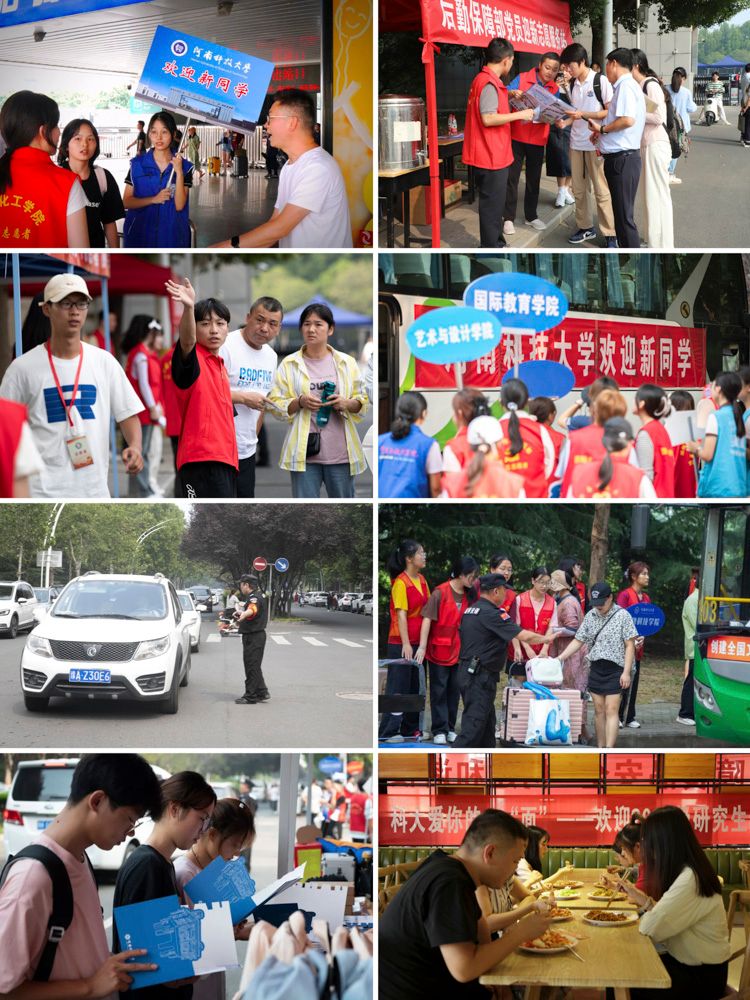 全校上下通力合作,用心、用情做好迎新工作。学校开展校园环境净化行动、组织志愿者到火车站、高铁站迎接新生及家长,安排大巴车提供“一站直达式”接站服务;设置“家长返程点”,免费送学生家长乘坐大巴返程至火车站和高铁站;畅通“绿色通道”,发放新生入学教育手册,为困难新生送上爱心大礼包;给报到研究生备上一碗“下车面”;邀请洛阳防诈中心现场传授防诈技巧,提高新生对电信网络诈骗的鉴别和防范能力;加强交通疏导,确保校园周边及校内交通畅通;设立“党员迎新服务站”,为新生讲解报到流程,提供手绘校园地图,热情周到的服务令新生及家长纷纷点赞。