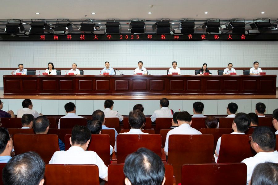 表彰会上,副校长李全安宣读先进集体、先进个人表彰决定;校党委书记王洪彬向国家级人才称号获得者王丹丹、金鑫、宋晓娜、冀保峰颁发绶带;校长孔留安向荣休教师代表孙艳红、上官宝、汤正新颁发证书和纪念章;全体校领导向教龄满三十年的教师代表、获得省部级以上荣誉称号的先进集体和先进个人代表及校级优秀教职工代表颁奖。