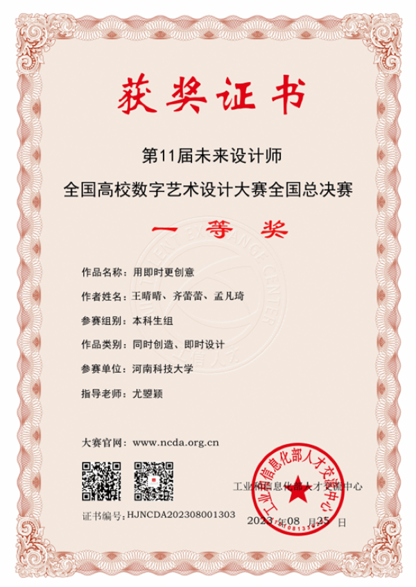 校新闻中心讯 近日,第11届未来设计师·全国高校数字艺术设计大赛(NCDA)获奖名单发布,网投官网师生在河南赛区和全国总决赛中获得佳绩。