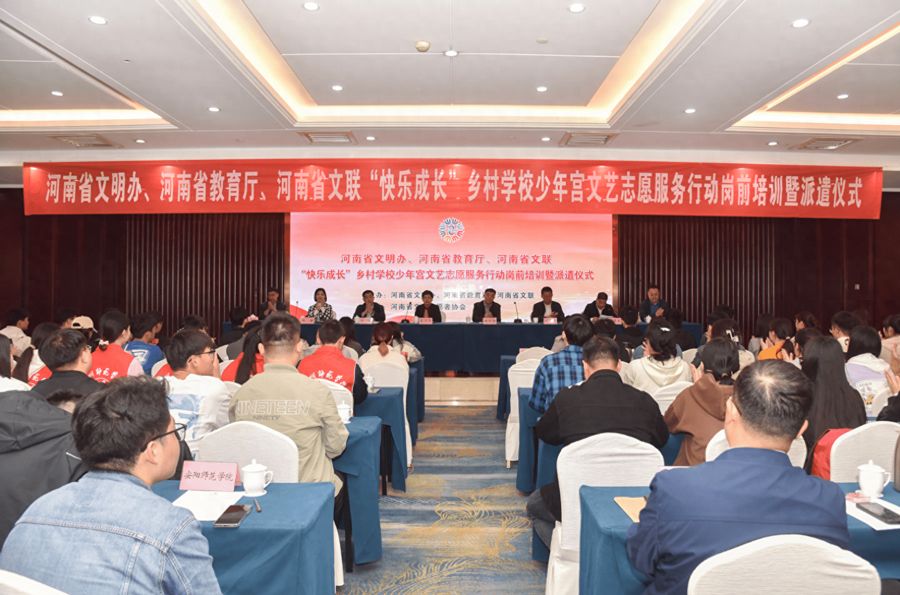 校新闻中心讯 10月8日,由省文明办、省教育厅、省文联主办的2023年下半年“快乐成长”乡村学校少年宫文艺志愿服务行动岗前培训暨派遣仪式在郑州举行。网投官网艺术与设计学院、体育学院的4名大学生志愿者参加培训,并将开始支教志愿服务工作。