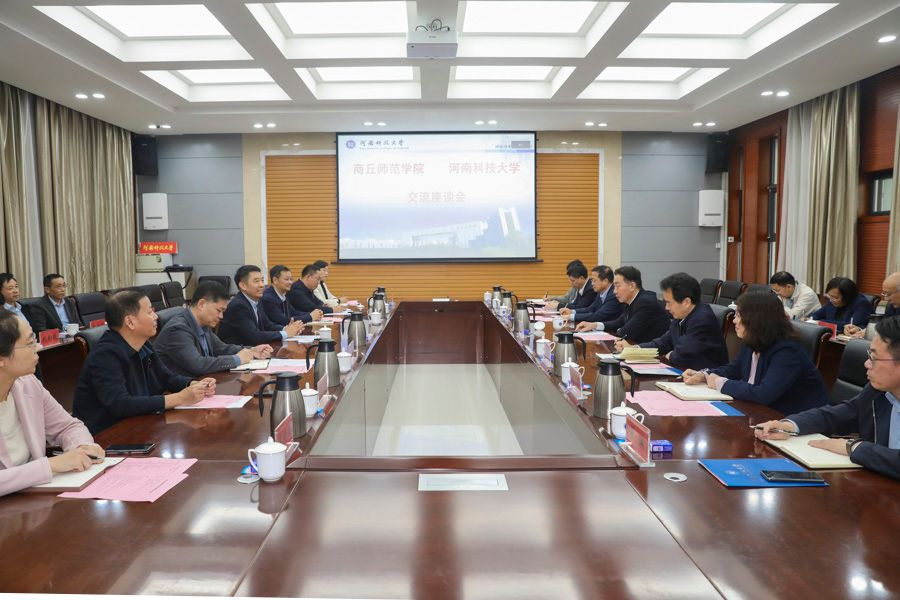 校新闻中心讯 10月13日上午,商丘师范学院党委书记张志坚、校长陈向炜、副校长程功鹏一行来校调研交流。交流会在博园第一会议室举行。校党委书记王洪彬,副校长张小安、王学峰出席会议。
