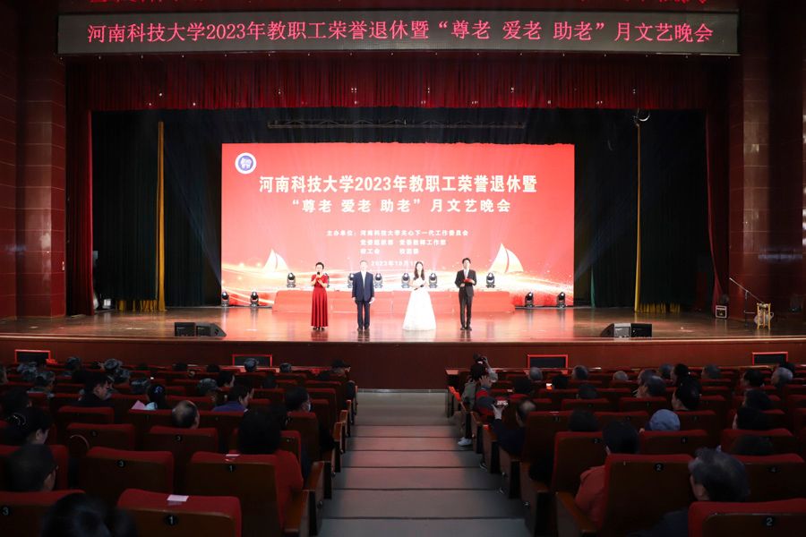 校新闻中心讯 为深入贯彻落实《河南省干部荣誉退休制度(试行)》和《河南省老龄工作委员会办公室关于开展2023年“敬老月”活动的通知》精神,10月19日晚,学校在开元校区会议中心举办2023年教职工荣誉退休暨“尊老 爱老 助老”月文艺晚会。校党委副书记、工会主席杨霞,校关工委常务副主任李漪出席晚会,各职能部门、直附属单位、学院、书院、各基层关工委代表,以及离退休教职工和2023级学生代表800余人共同观看了文艺演出。