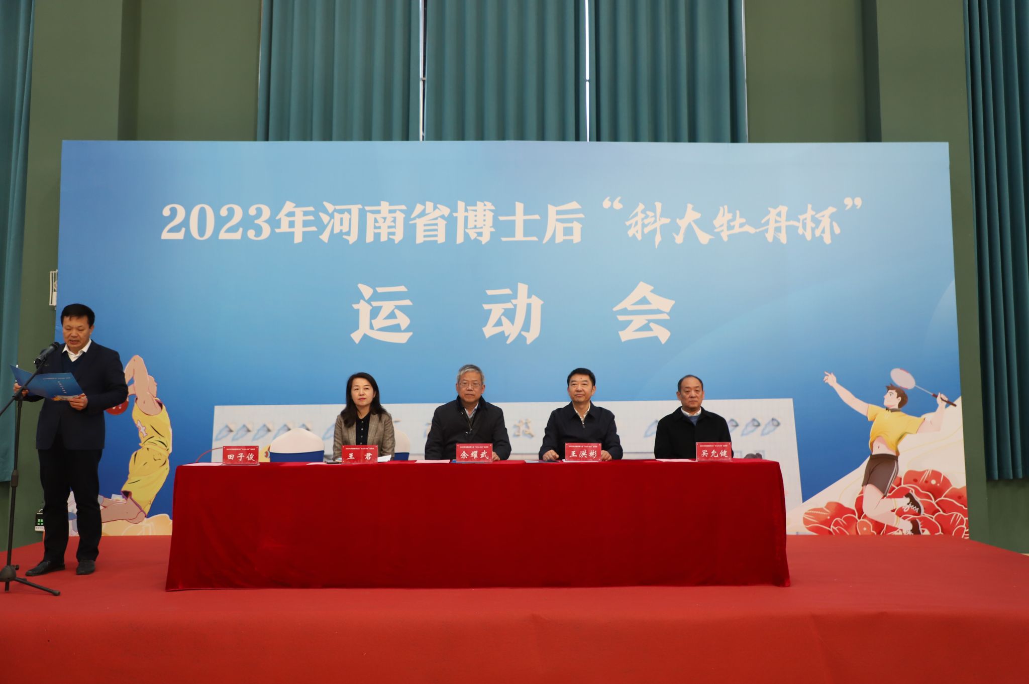 校新闻中心讯 11月23日上午,河南省博士后“科大牡丹杯”运动会在网投官网体育馆举行开幕式。河南省人力资源和社会保障厅二级巡视员余耀武,校党委书记、校长王洪彬,河南省人力资源和社会保障厅博士后与留学人员工作处处长王君,洛阳市人力资源和社会保障局党组书记、局长买允健出席开幕式。人事工作部部长田子俊主持开幕式。