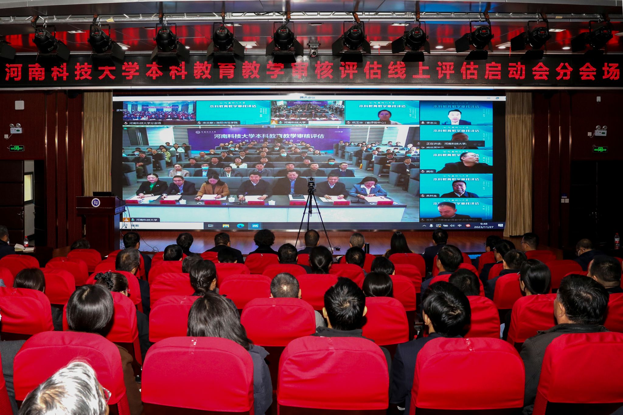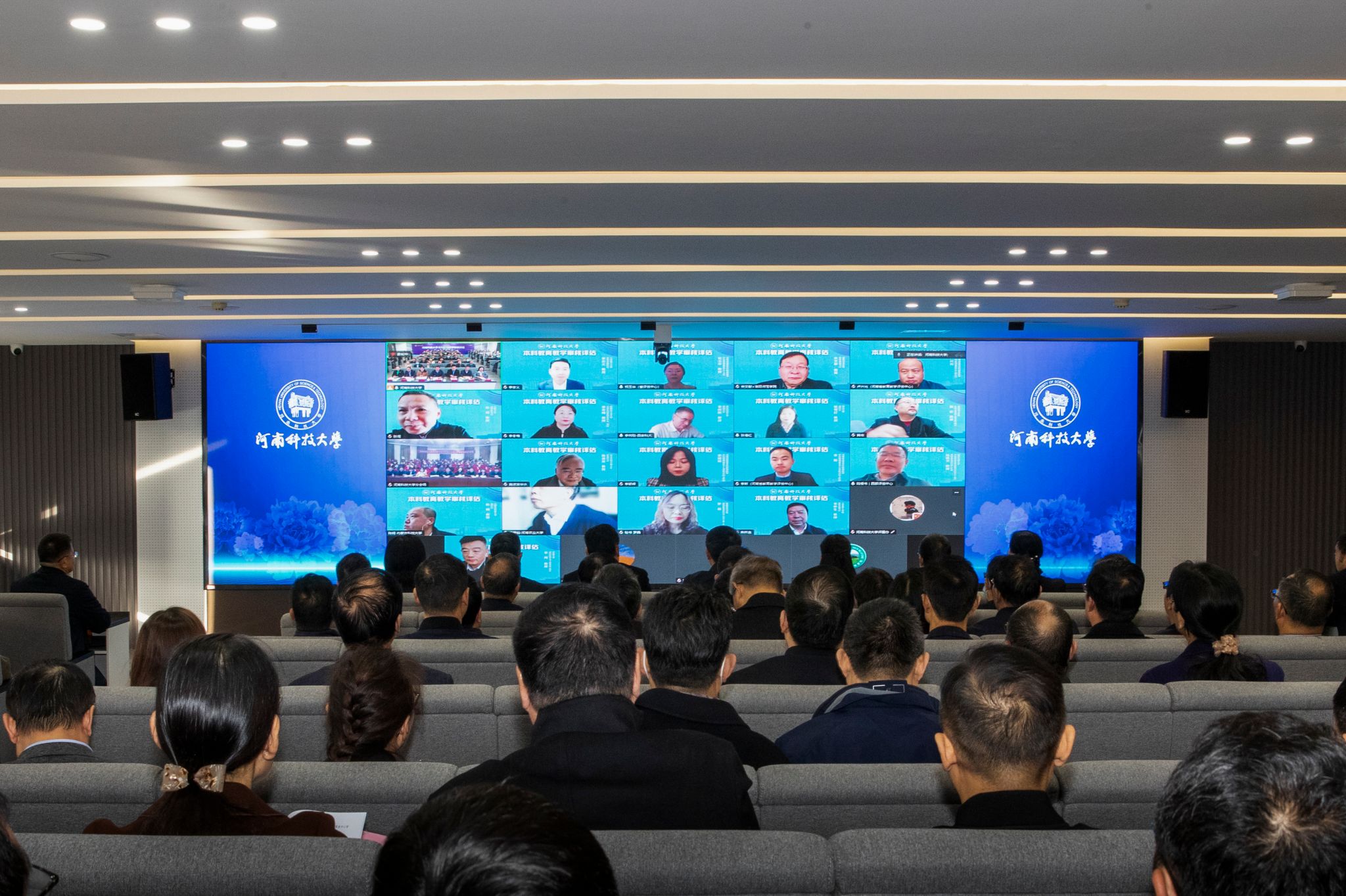 会议设主会场和分会场,采取线上线下结合的形式召开。教学督导委员会委员、全体中层干部、专家联络员、评建办公室全体人员参加会议。