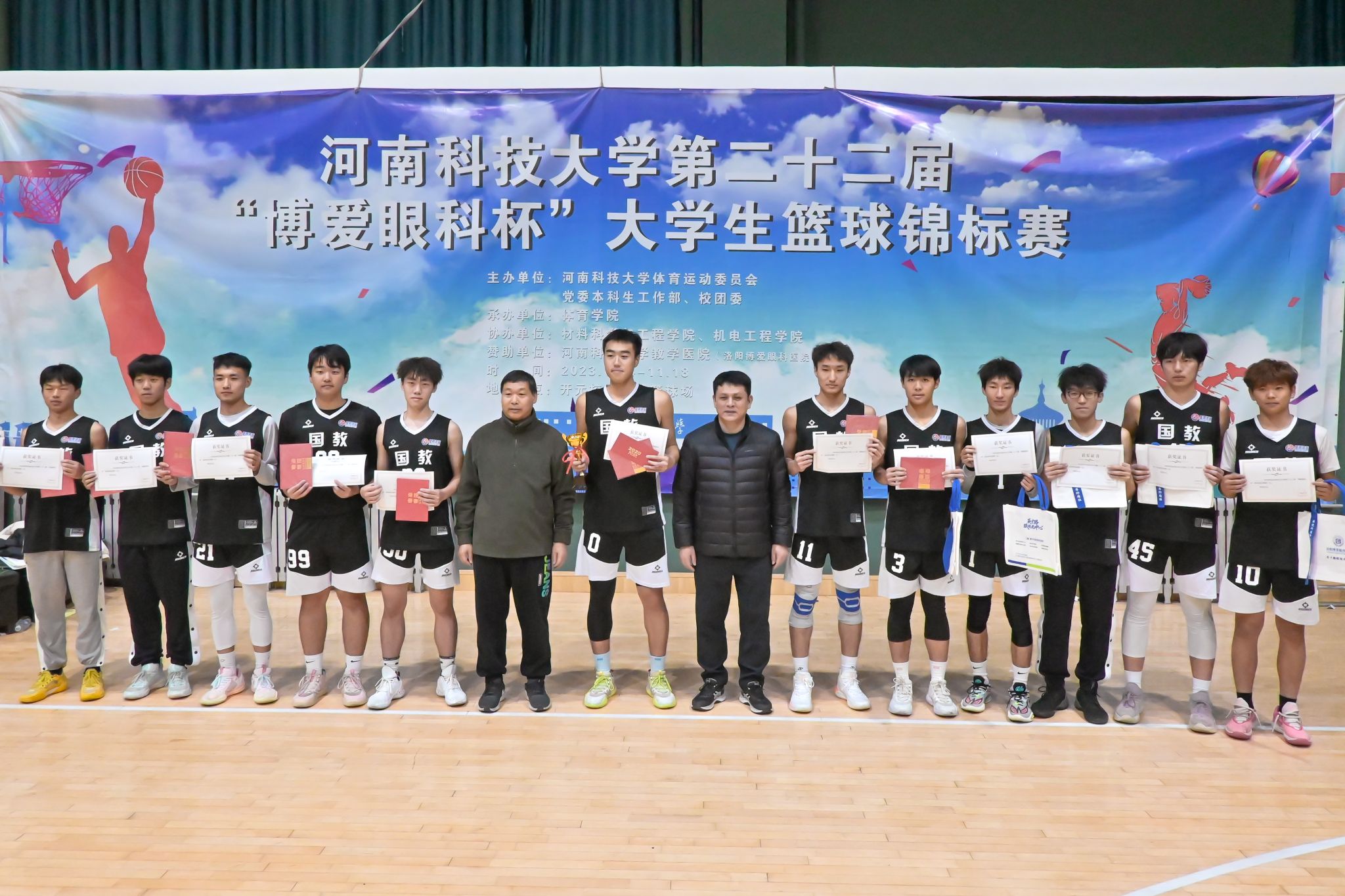 校新闻中心讯 11月18日晚上,十大网投正规信誉官网第二十二届 “博爱眼科杯”大学生篮球锦标赛在开元校区嘉园室内篮球场成功落下帷幕。该比赛由十大网投正规信誉官网体育运动委员会、党委本科生工作部、校团委主办,体育学院承办,材料科学与工程学院、机电工程学院协办。来自全校男子组22支代表队,女子组17支代表队, 共507名队员和教练员参加比赛,50名师生裁判员参与本次比赛执裁工作。