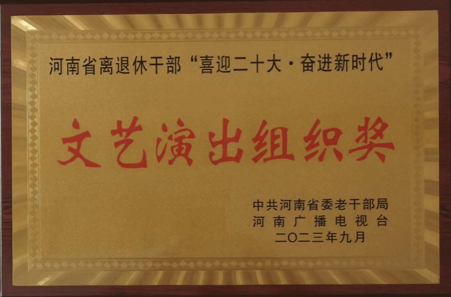 校新闻中心讯 近日,中共河南省委老干部局和河南广播电视台联合下文,对全省离退休干部“喜迎二十大•奋进新时代”文艺演出活动进行了表彰通报。网投官网离退休人员工作处精心组织,积极参与,荣获“文艺演出组织奖”,选送的节目“太极扇表演——《我爱你中国》” 荣获二等奖。
