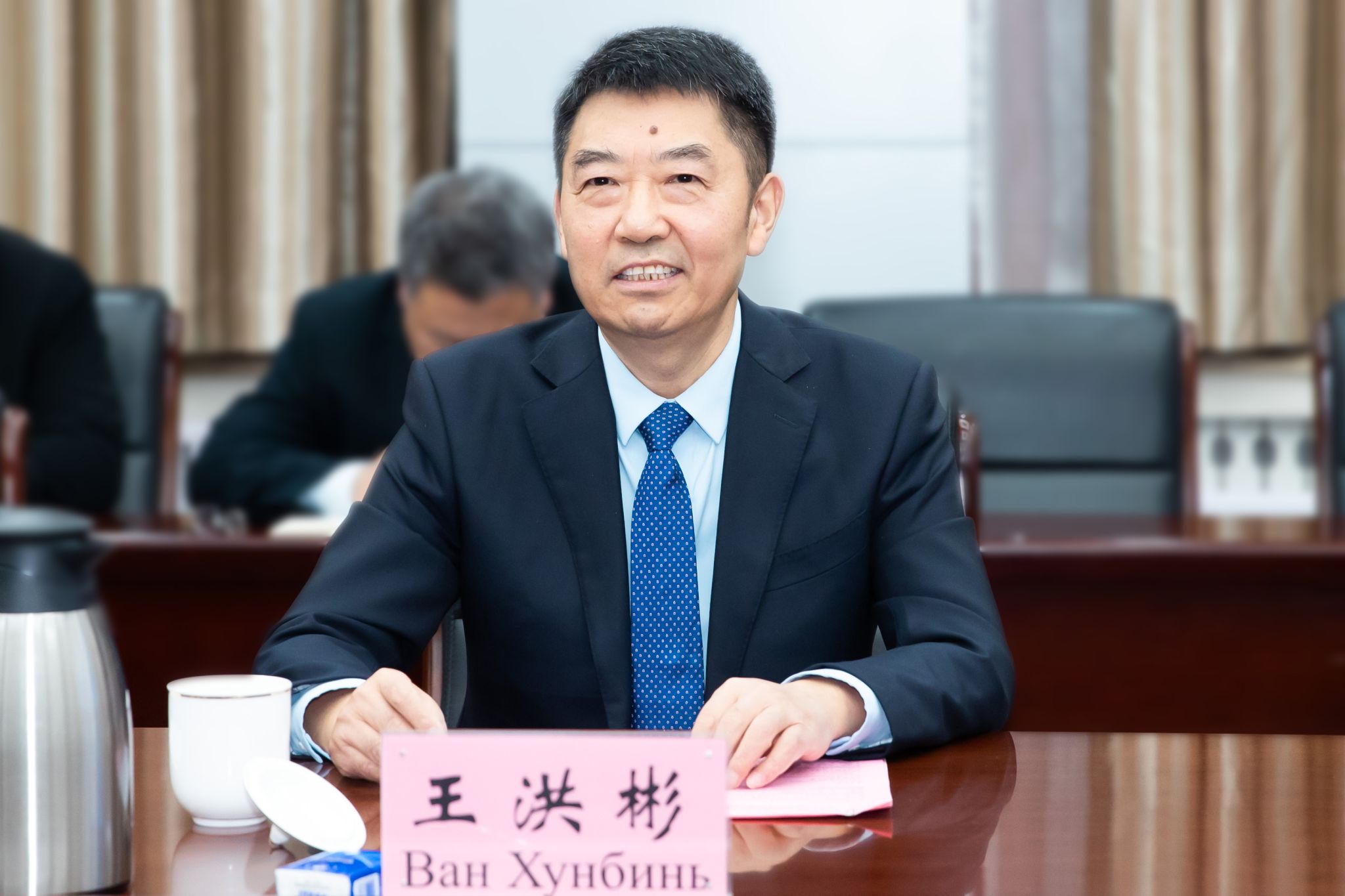 王洪彬向索洛维耶夫·米哈伊尔·亚历山德罗维奇一行来访表示欢迎,对托木斯克理工大学给予两校合作的大力支持表示感谢,并介绍了学校近年来在博士点、博士后流动站、优势学科以及重点实验室建设等方面取得的成绩。他指出,通过共同努力,两校合作交流成效显著,合作举办的自动化专业本科教育运行良好,希望两校在师生交流、人文交往、科研合作方面开展更深入、更高层次的合作,推动两校持续共赢发展。