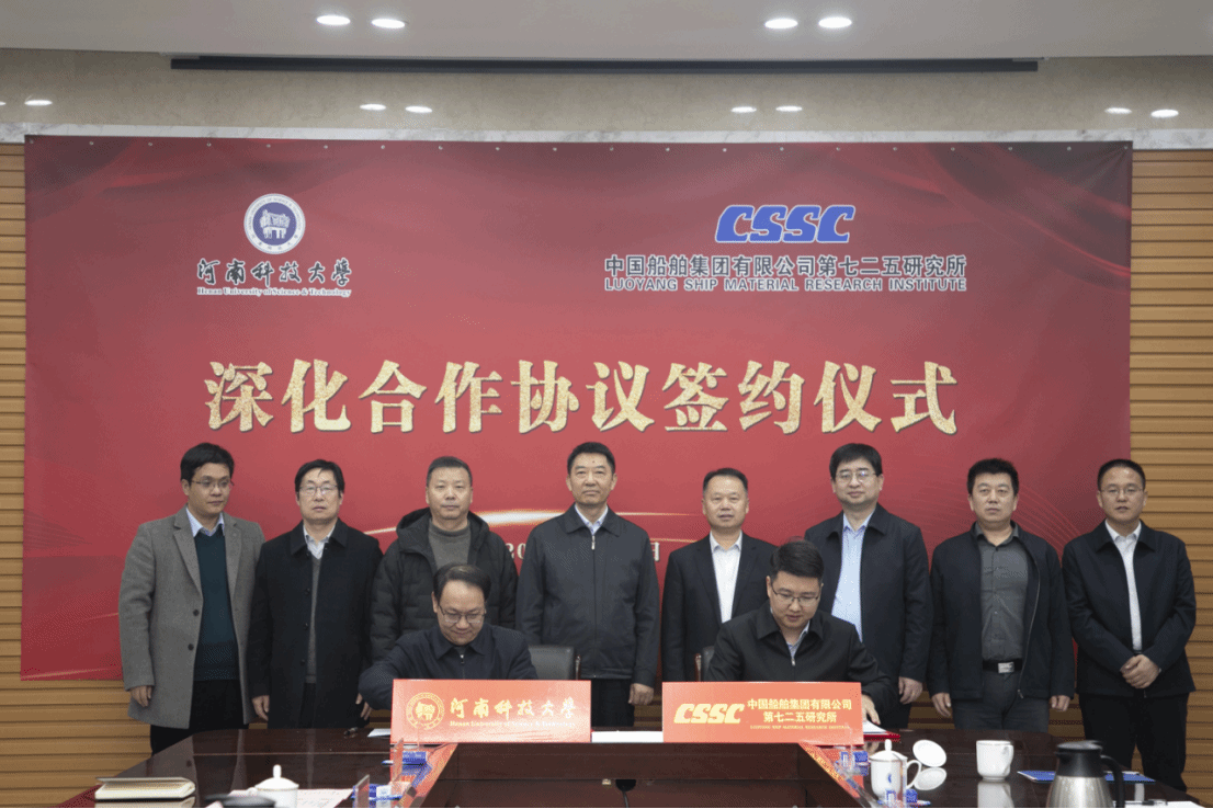 校新闻中心讯 1月11日,网投官网与中国船舶集团有限公司第七二五研究所举行深化合作协议签约仪式。党委书记、校长王洪彬,中国船舶集团有限公司第七二五研究所所长王其红,副校长吴庆涛,七二五所副所长孙磊出席签约仪式。仪式由党政办公室主任孟玉勤主持。