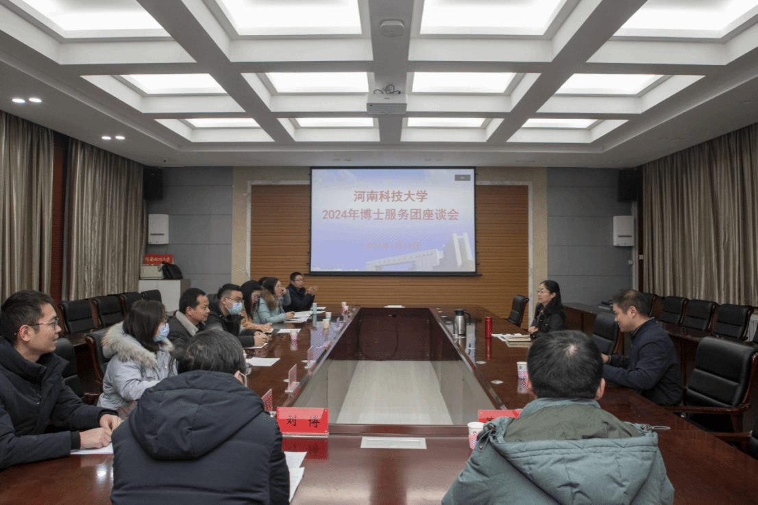 校新闻中心讯 1月19日,学校2024年博士服务团座谈会在博园第一会议室召开。校党委副书记、工会主席杨霞出席座谈会。会议由党委组织部副部长李继光主持。