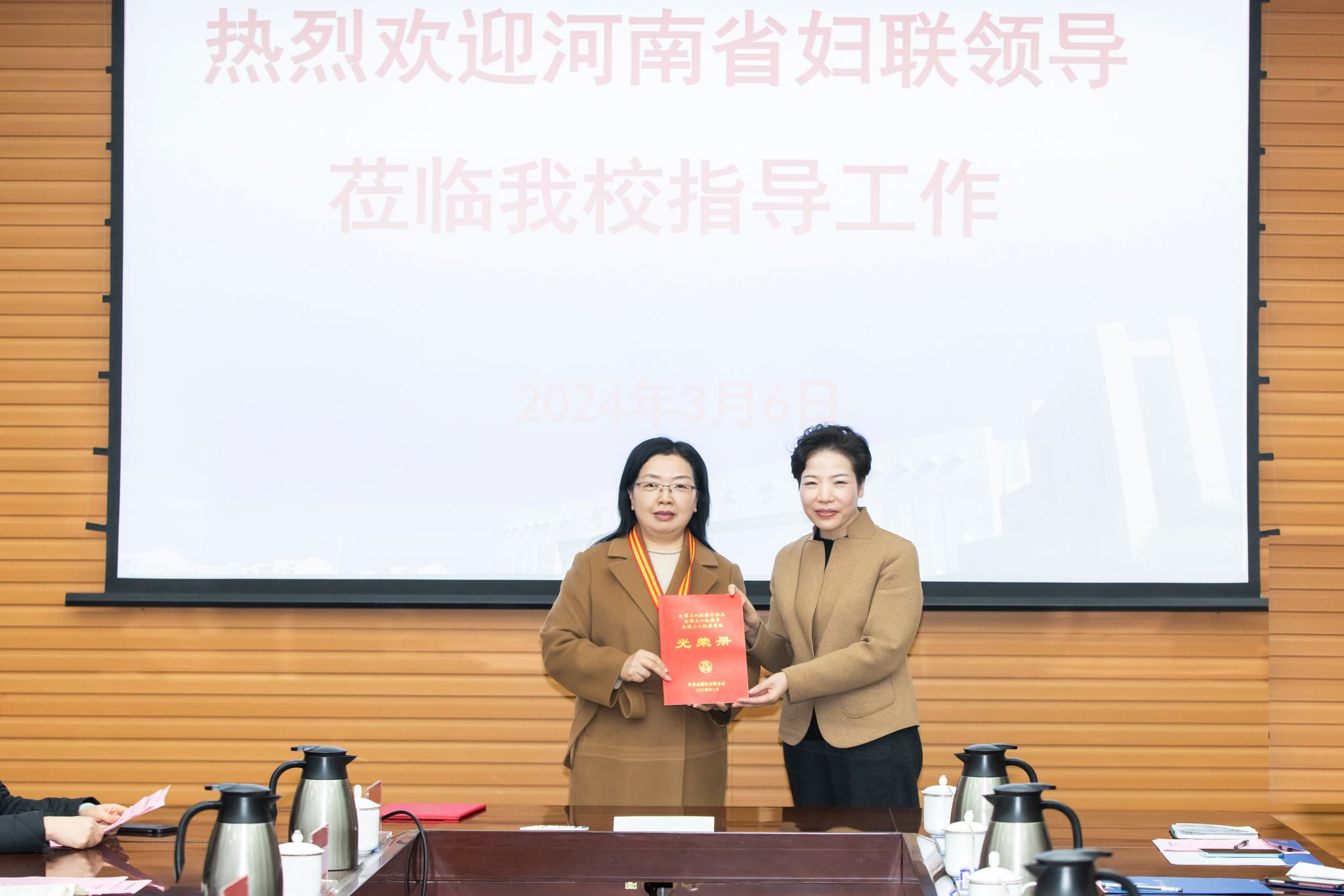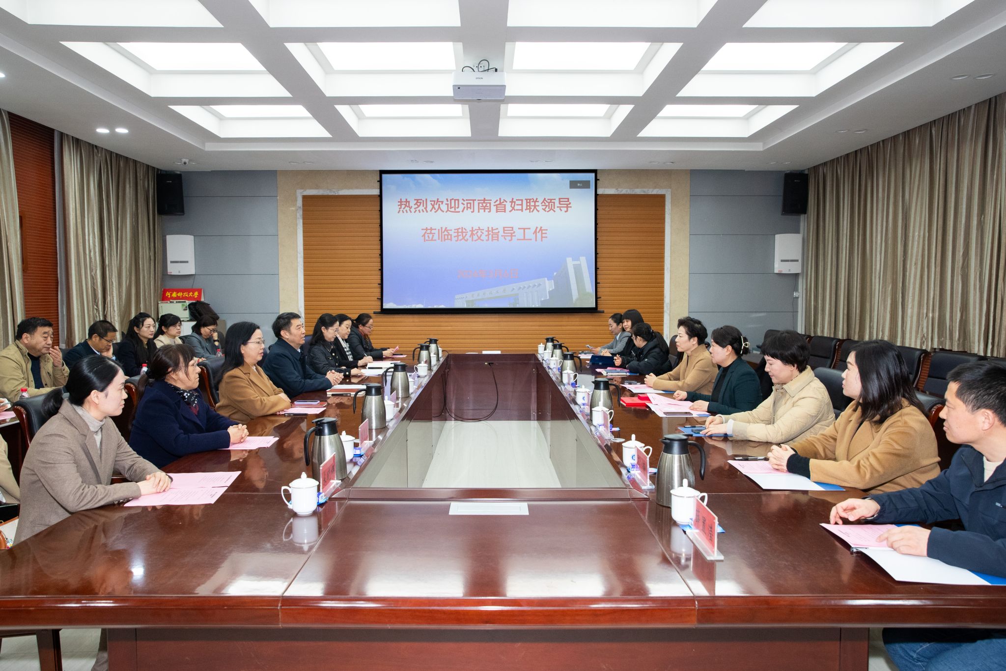 校新闻中心讯 3月6日上午,河南省妇联党组成员、副主席张宇辉一行来校调研。学校在博园第一会议室召开座谈会。党委书记、校长王洪彬,党委副书记、工会主席杨霞,副校长侯小改,洛阳市妇联党组书记、主席张霞出席会议。会议由杨霞主持。