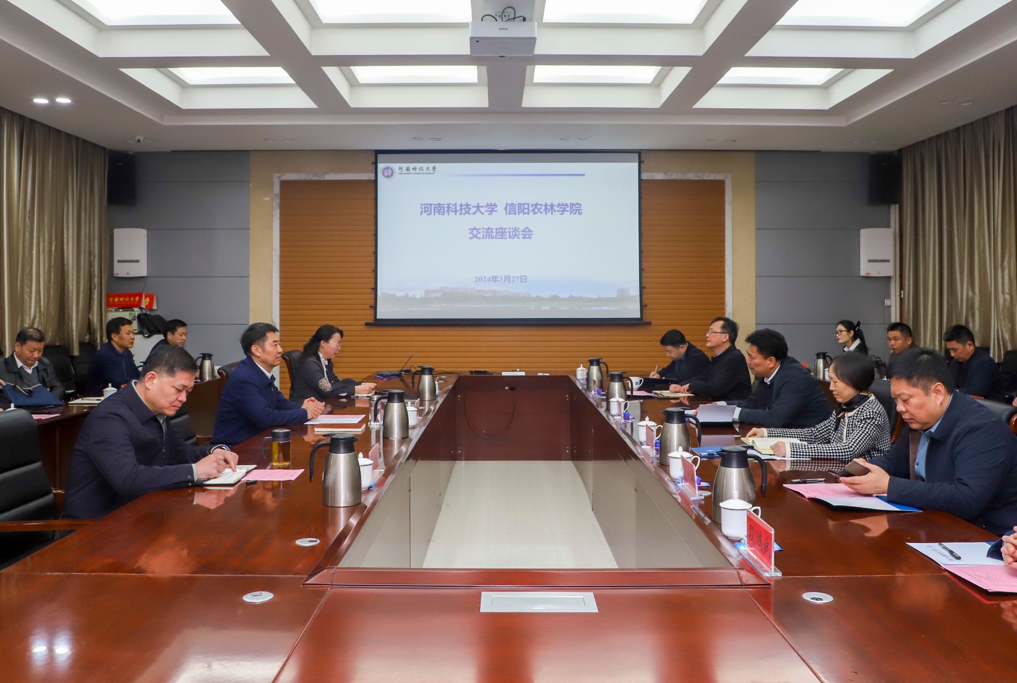 校新闻中心讯 3月27日,信阳农林学院党委书记黄松、校长曹健一行来校进行调研交流。学校在博园第一会议室举行座谈会。党委书记、校长王洪彬,党委副书记海然、副校长王学峰出席会议。会议由海然主持。