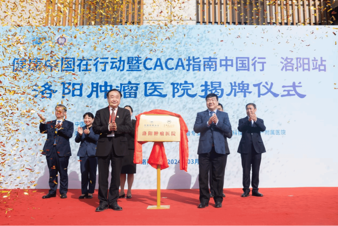 活动期间,中国抗癌协会和第一附属医院共建洛阳肿瘤医院揭牌。中国抗癌协会肿瘤整合临床培训基地(洛阳)、中国抗癌协会肿瘤整合防筛培训基地(洛阳)、中国抗癌协会肿瘤科普宣教培训基地(洛阳)、中国抗癌协会肿瘤临床研究转化基地(洛阳)等四个基地落户第一附属医院。樊代明、王洪彬、郭茂华和赵勇共同为基地赠送《中国肿瘤整合诊治指南(CACA)》。